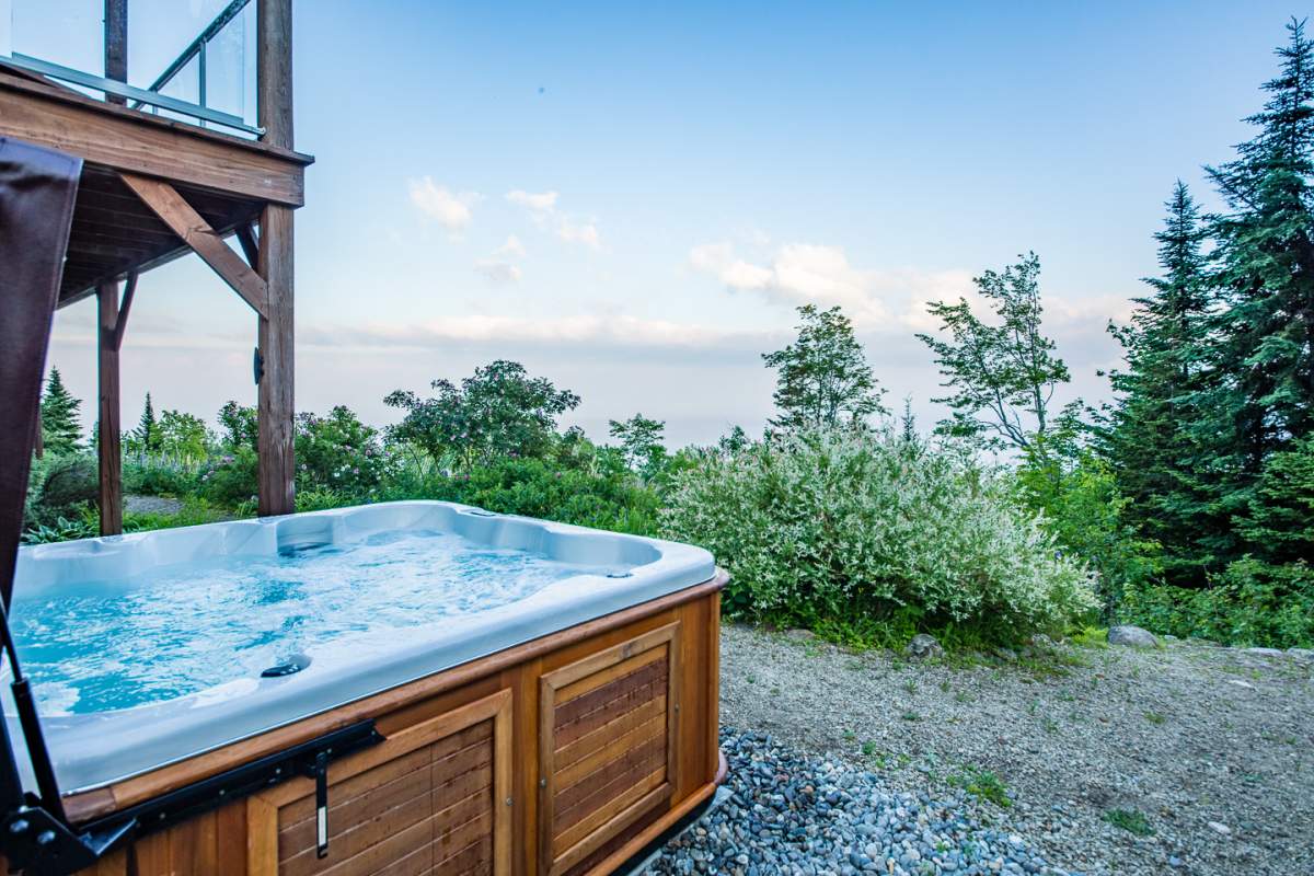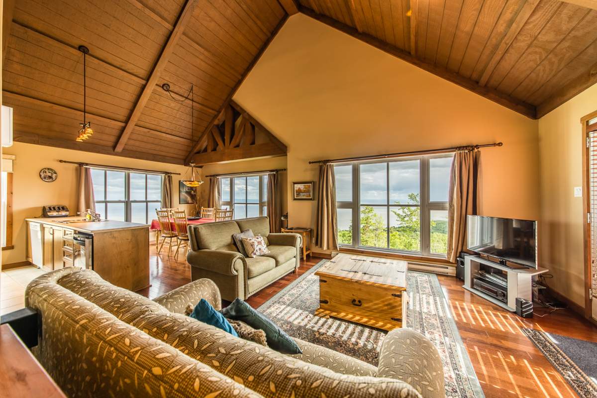 Envie de profiter du plein air dans un luxueux chalet au coeur de la forêt offrant une vue à couper le souffle sur le fleuve?