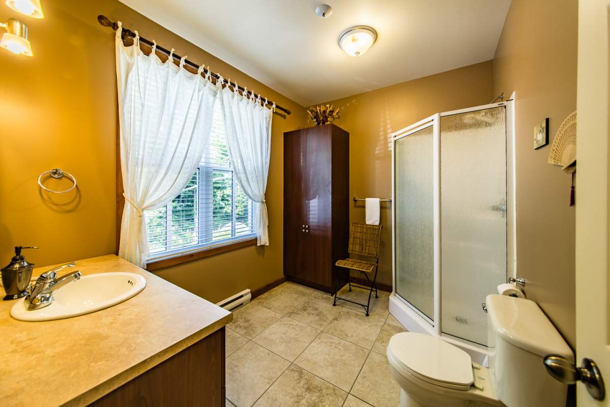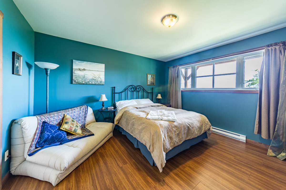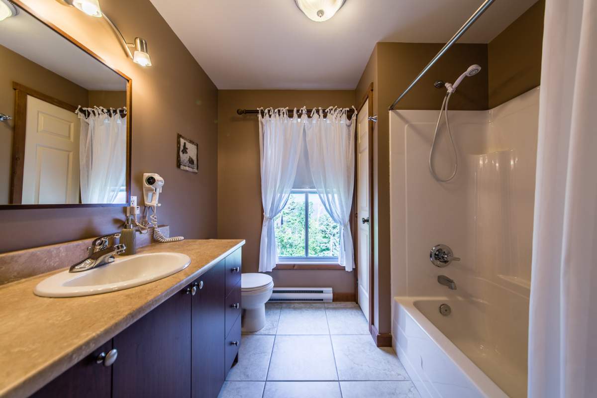 L’unité du rez-de-chaussé sur deux étages offre 5 chambres fermées, 3 salles de bain complètes, foyer au bois, téléviseur, salle à manger pour 10 et cuisine tout équipée. De plus, une galerie moustiquaire (gazebo) avec chauffe-terrasse et ensemble de patio est à votre disposition.