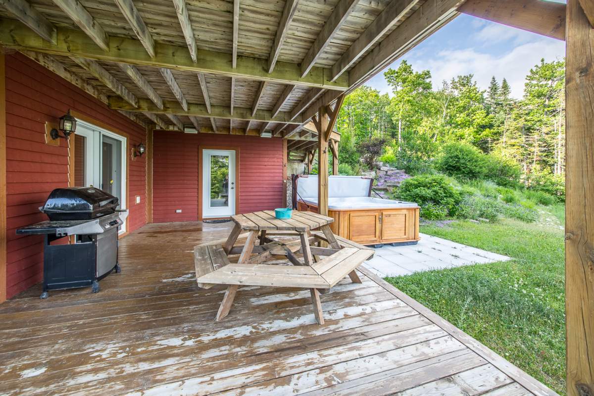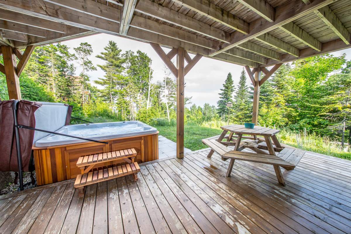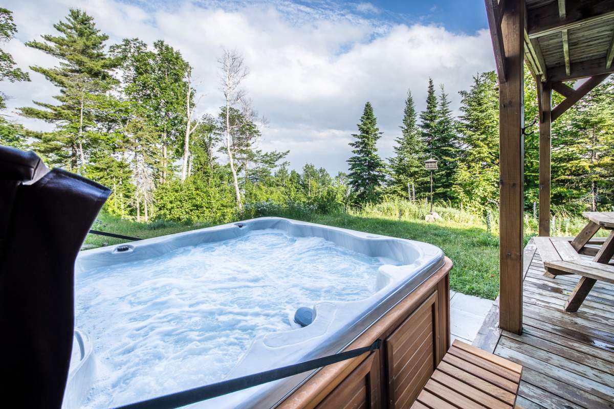 Profitez de votre séjour pour vous détendre complètement et venez vous relaxer dans le spa à 7 places du jardin. Celui-ci est partagé entre les 3 condos du chalet.