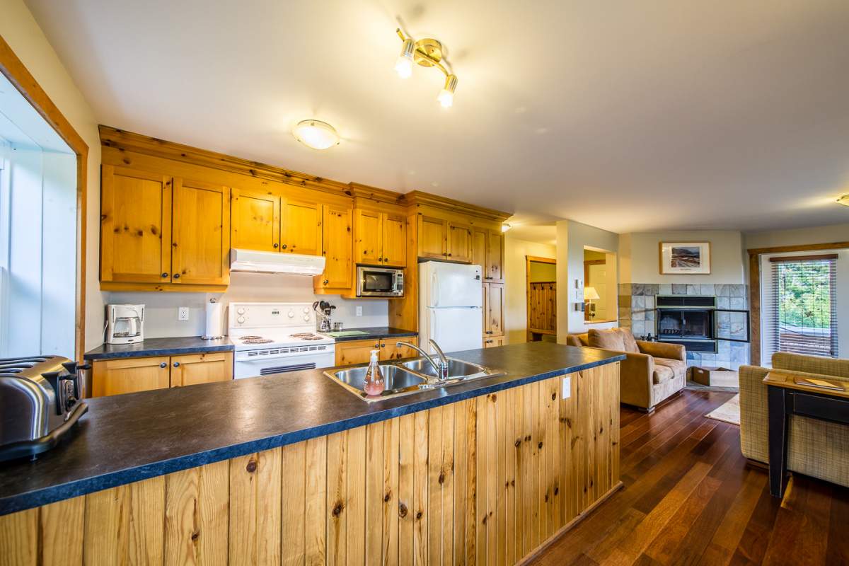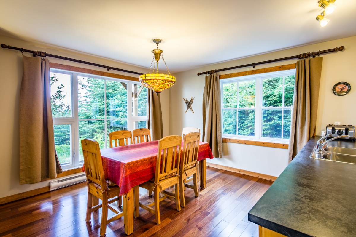 Ce condo se trouve à l’étage jardin d’un luxueux chalet situé en pleine forêt. Avec une vue panoramique exceptionnelle sur le fleuve St-Laurent ainsi que sur les montagnes du Massif de Charlevoix.
