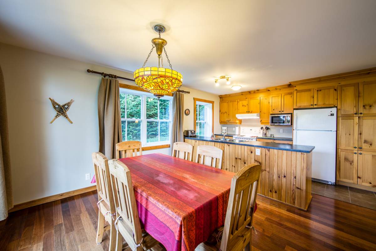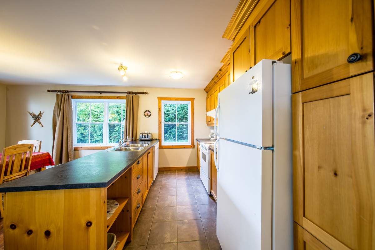 Pour une ambiance chaleureuse et détendue, rendez-vous au grand salon pour profiter du foyer au bois et du téléviseur écran plat HD. Salle à manger à la capacité d’accueillir 6 personnes et sa cuisine est entièrement équipée. Le tout avec grande entrée et espace de rangement et séchage. Le Wi-Fi est inclus ainsi qu’un BBQ au gaz à votre disposition.
