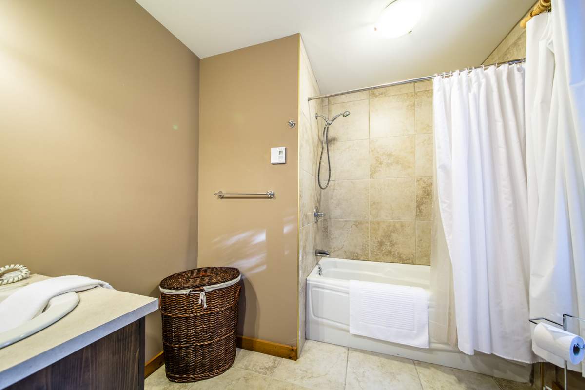 Le condo possède deux chambres fermées, avec deux lits queen et un lit simple ainsi que deux salles de bain complètes pour que chacun ait son intimité. Chacune des chambres comporte de la literie et des serviettes à disposition.