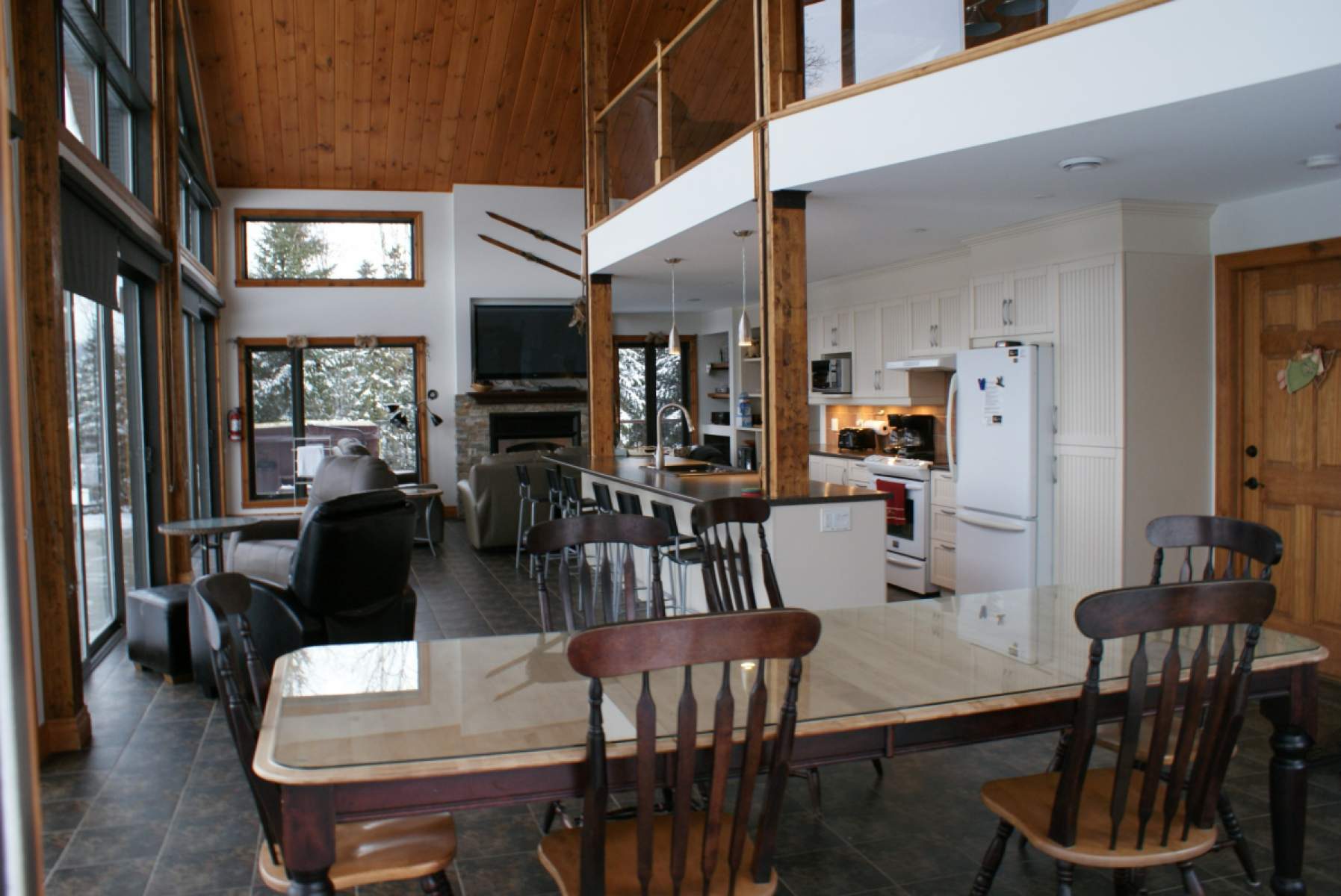 Il possède une grande pièce principale, à aire ouverte et avec de grandes fenêtres pour un environnement chaleureux et convivial. La vaste salle à manger et la cuisine entièrement équipée et digne d’un chef vous permettent de partager de délicieux moments avec vos convives.
