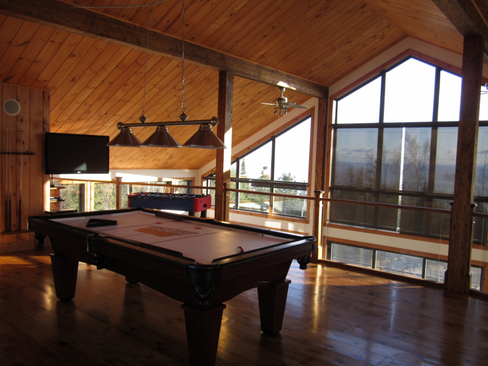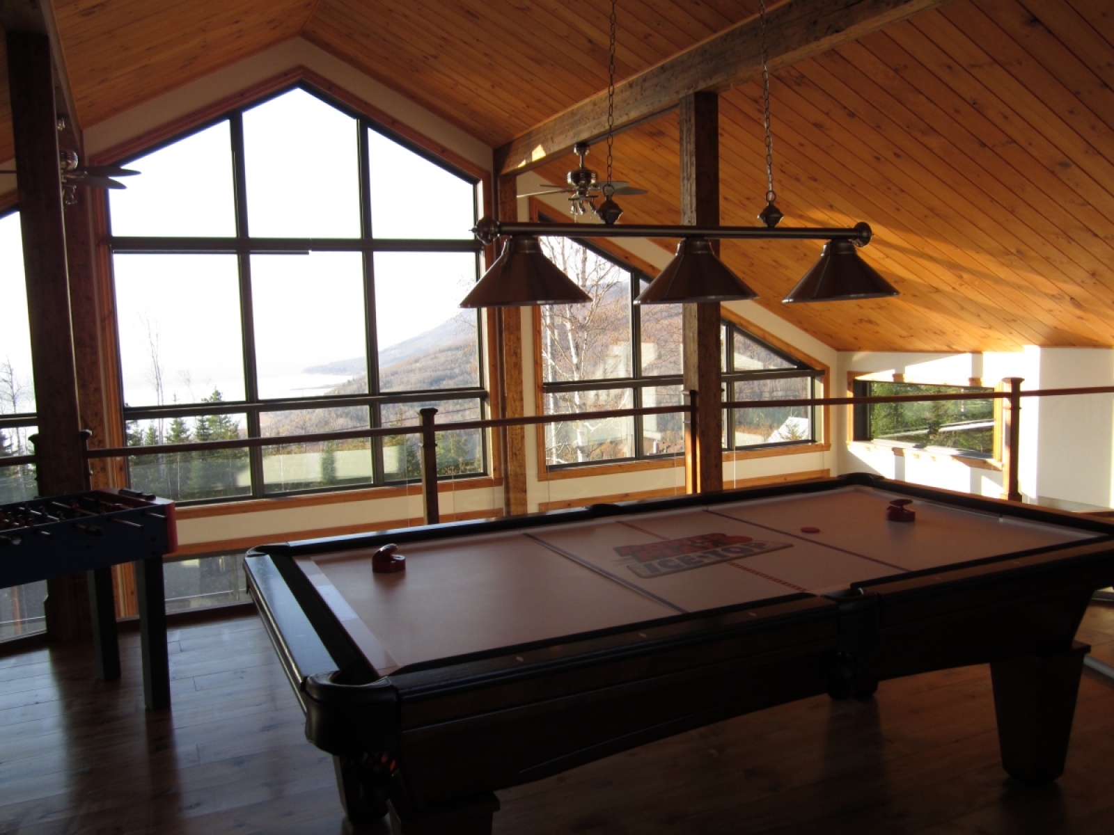 Avec ses 3050 pi² habitables, le chalet Le Réconfort est en mesure d’accueillir jusqu’à 12 personnes. Il est composé de quatre chambres avec lits Queen et trois salles de bain. À l’étage, vous trouverez également une table de billard.