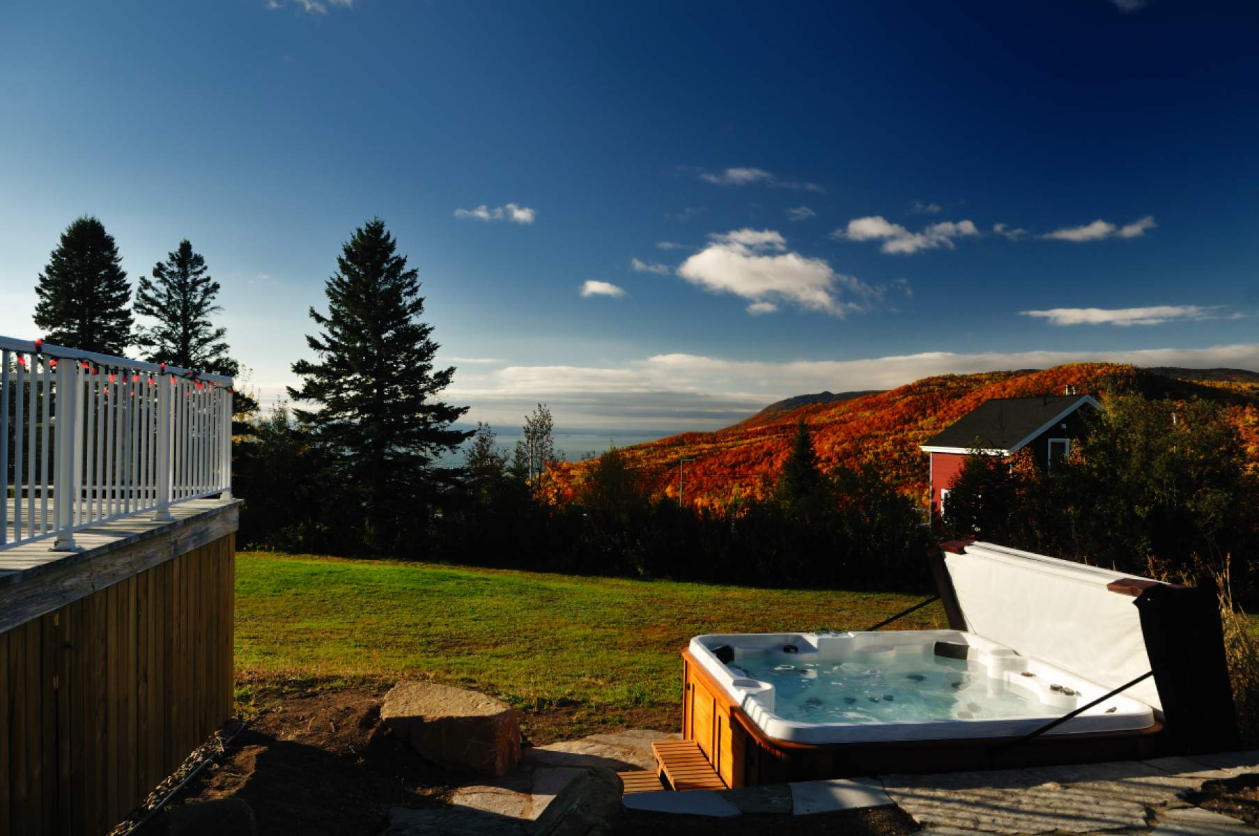 Évacuez le stress en venant vous détendre dans un spa extérieur, avec une magnifique vue sur la région. Quoi de mieux pour pleinement vous évader du quotidien?