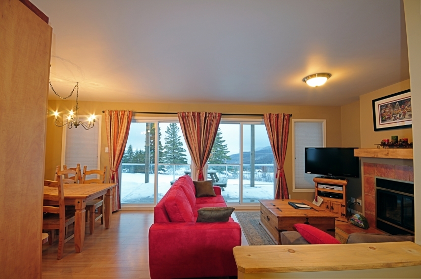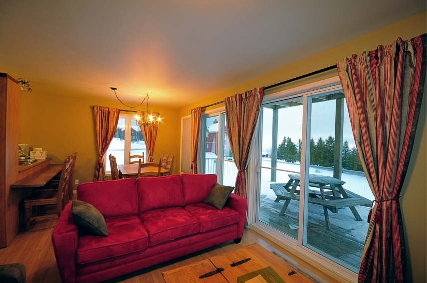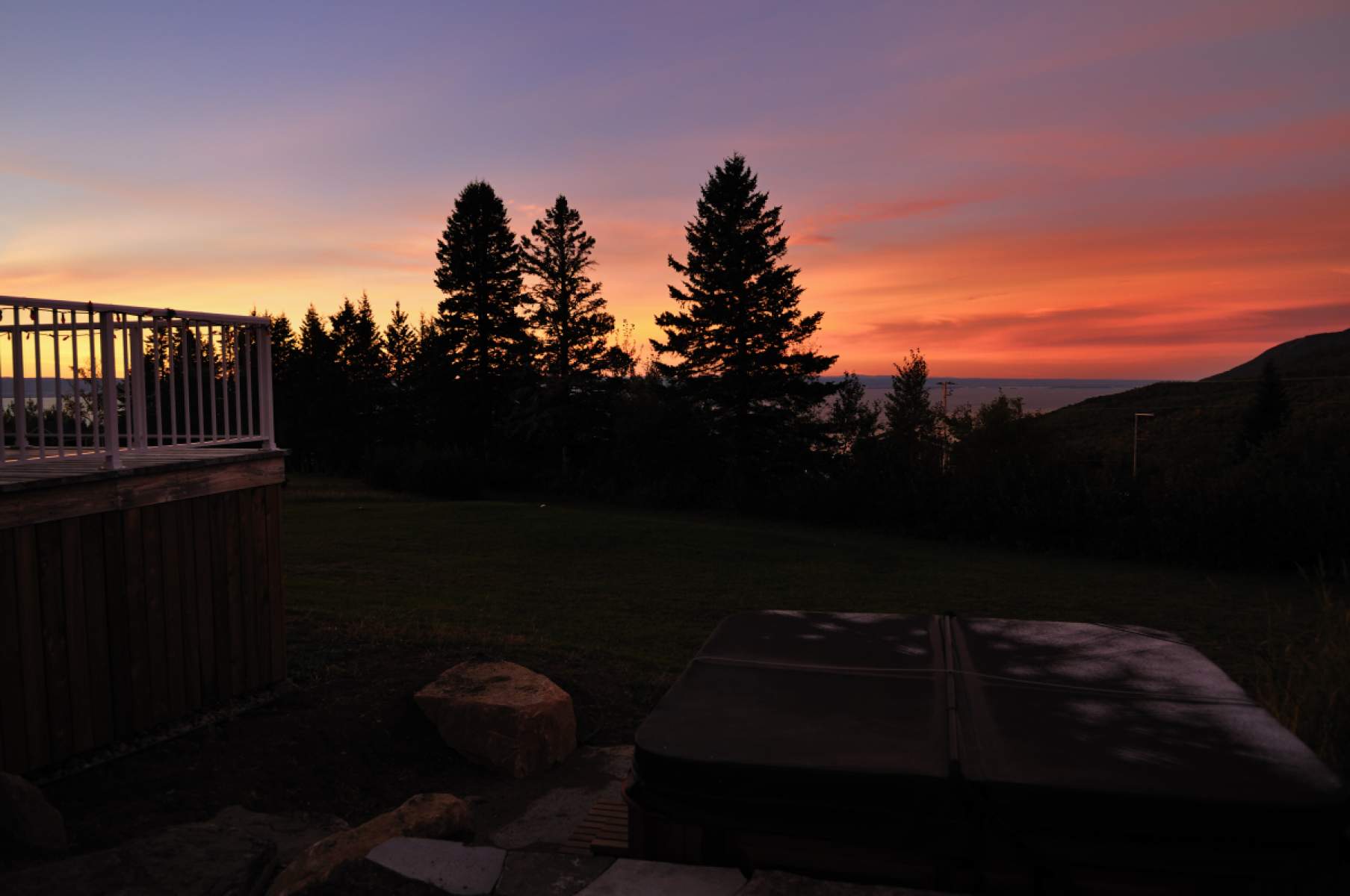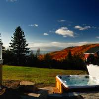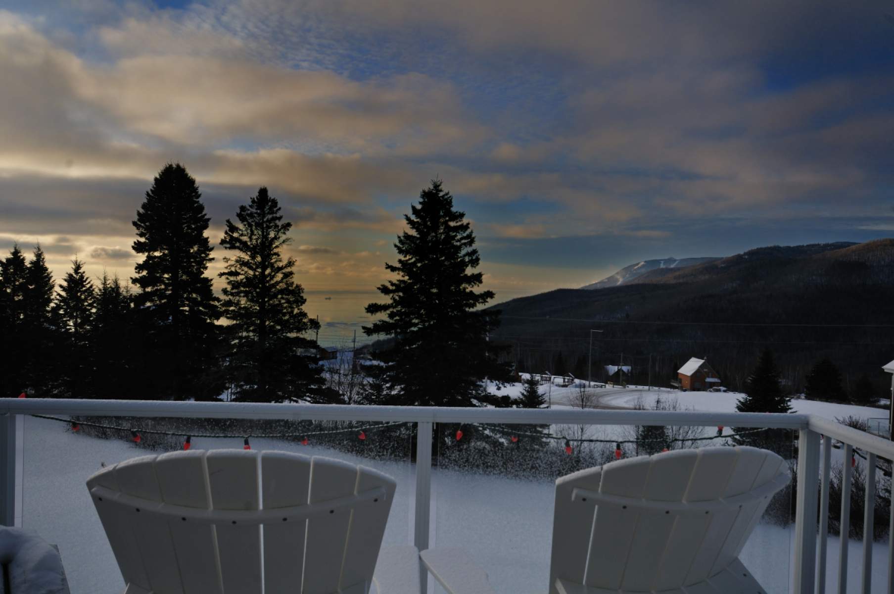 Avec ses larges fenêtres et ses deux balcons, le chalet L’évasion Spa vous permet de profiter d’une vue incroyable sur le fleuve St-Laurent ainsi que sur tout le Massif. En été, vous pourrez même en profiter pour manger dehors tout en profitant du plein air et en admirant la vue exceptionnelle.