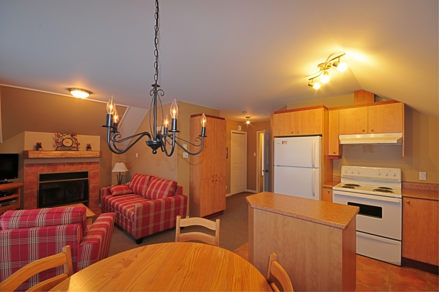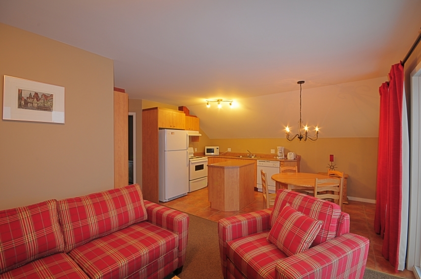 Avec trois chambres spacieuses, l’unité du bas est en mesure d’accueillir des groupes allant jusqu’à six personnes. Vous pourrez aussi profiter d’une pièce à vivre chaleureuse et accueillante, pour de bons moments entre amis ou bien en famille.